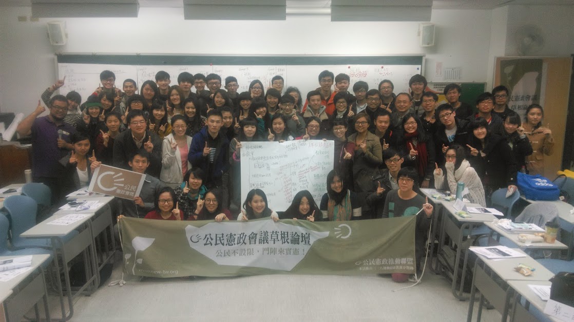 「三一八佔領運動」結束後,由二十多個公民團體所組成的「公民憲政推動聯盟」,即以「由下而上、全面憲改」作為訴求,在全國推動人民參與審議憲改的民主實驗。這個基本訴求強調,在二○一六年大選前,推動朝野與公民社會已具有高度共識的議題,並同時在這個基礎之上,開啟更廣闊的憲改空間,透過公開的民主程序充分匯納廣泛的各界意見,以更為擴大公民共和的基礎,不僅能強化憲政秩序的正當性,進而促使人民認同未來憲改內容。這個有別於各政黨所提出的主張,看似艱難卻有其存在之必要性。