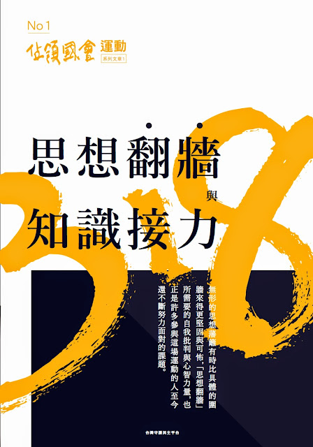 「思想翻牆與知識接力」系列文集第一集紀錄了許多台灣守護民主平台成員在 318 佔領國會期間,對於這個思想進程的參與。雖然距離一個理想的公民智庫還相當遙遠,但在思想翻牆之後,很多人卻已很清楚地理解到跨越自己專業知識高牆的重要性,並積極地投入另一個長 期的知識接力。我個人也深深期待,這會是台灣另一個思想階段的開始,或許也是 318 運動一個最深遠的影響。