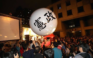 (民主平台與憲動盟準備了一顆憲改大氣球營造現場氣氛,照片截圖自新頭殼報導)